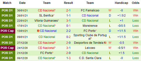 + Thống kê 10 trận gần nhất của Nacional