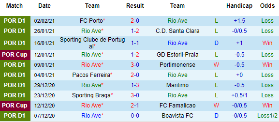 + Thống kê 10 trận gần nhất của Rio Ave
