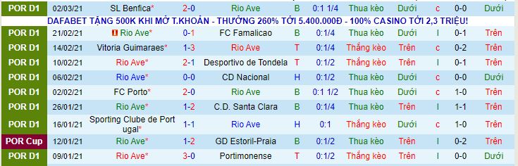 + Thống kê 10 trận gần nhất của Rio Ave