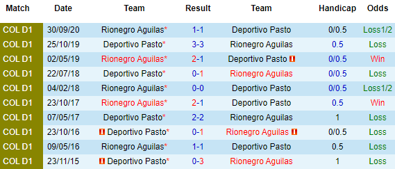 Qua 3 lượt trận, Deportivo Pasto vẫn đang bất bại với 1 chiến thắng và 2 trận hòa. Nhưng vấn đề nằm ở khía cạnh đối đầu, Deportivo Pasto dường như gặp dớp trước Rionegro Aguilas và đã 10 lần chạm trán gần nhất Deportivo Pasto không thể đánh bại đối thủ.