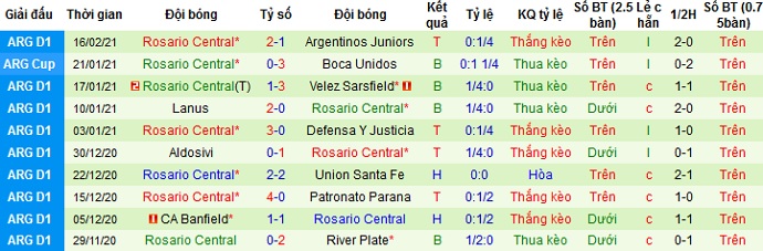 + Thống kê 10 trận gần nhất của Rosario Central