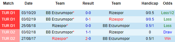 + Lịch sử đối đầu Rizespor vs Erzurum BB