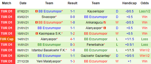 + Thống kê 10 trận gần nhất của Erzurum BB
