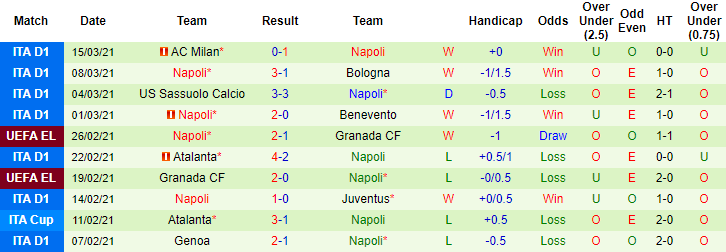 + Thống kê 10 trận gần nhất của Napoli