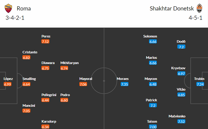 3 chiến thắng gần nhất trên sân nhà của AS Roma thuộc khuôn khổ Europa League đều có cách biệt từ 2 bàn trở lên. Họ đủ khả năng tái diễn điều tương tự trước Shakhtar Donetsk.