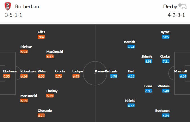 Đội hình dự kiến Rotherham United vs Derby County
