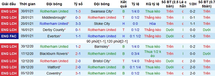 + Thống kê 10 trận gần nhất của Rotherham United