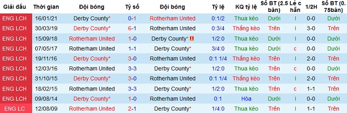 + Lịch sử đối đầu Rotherham United vs Derby County