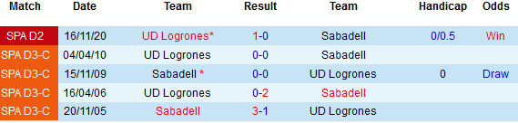+ Lịch sử đối đầu Sabadell vs Logrones