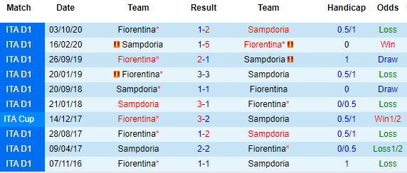 + Lịch sử đối đầu Sampdoria vs Fiorentina