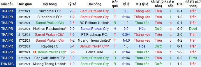 + Soi tỷ lệ kèo tài xỉu: Kèo tài xỉu cũng ở mức cao là 3,0. Đáng nói là trên sân nhà của Samut Prakan, cả 10 trận gần nhất đều có tổng số bàn thắng từ 3 bàn trở lên bất kể đội chủ nhà thắng hay thua. Thế nên chọn tài ở trận đấu này là hợp lý hơn cả.