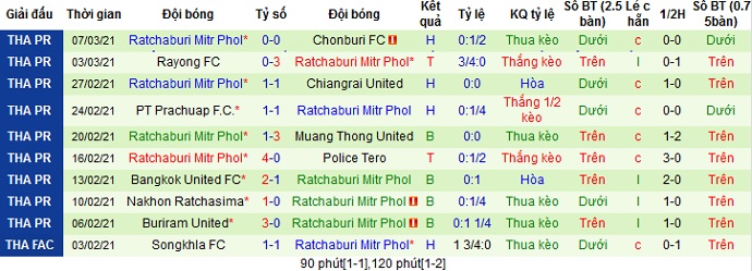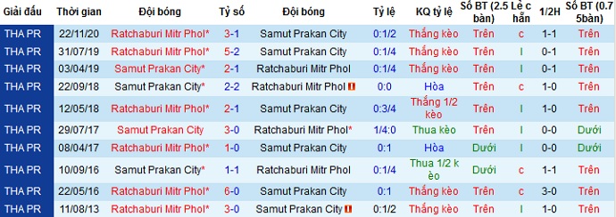 Trong 10 lần gặp nhau gần nhất giữa hai đội thì có đến 8 lần phần thắng thuộc về đội chủ nhà, còn lại 2 lần bất phân thắng bại. Ngoai ra phong độ sân khách của Ratchaburi không thật tốt trong khi Samut Prakan vẫn có được sự ổn định gần đây nên có lẽ chọn cửa trên là sự lựa chọn hợp lý.