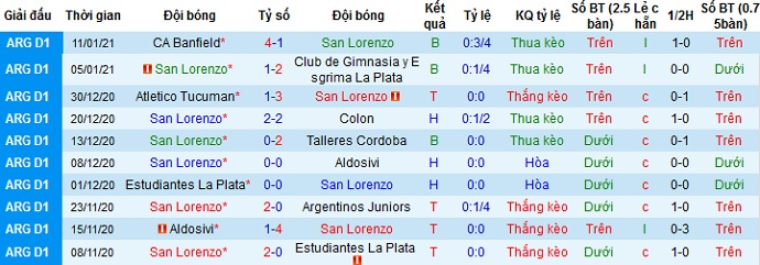 + Thống kê 10 trận gần nhất của San Lorenzo