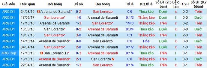 Tỷ lệ kèo San Lorenzo vs Arsenal Sarandi