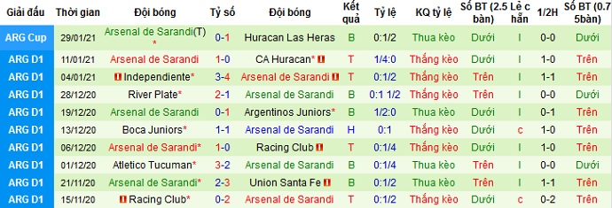 + Thống kê 10 trận gần nhất của Arsenal Sarandi