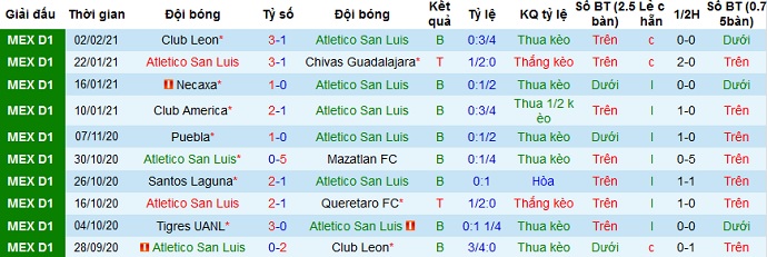 + Thống kê 10 trận gần nhất của San Luis