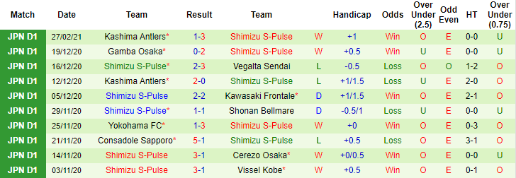 + Thống kê 10 trận gần nhất của Shimizu S-Pulse