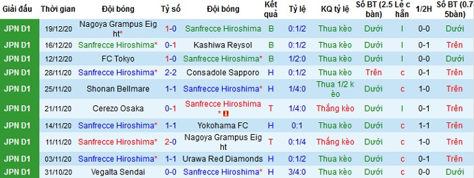 + Thống kê 10 trận gần nhất của Sanfrecce Hiroshimai