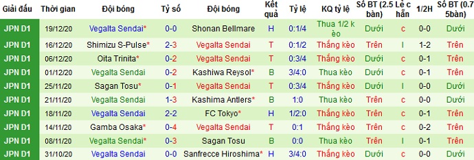 Ngay cả ở mùa giải trước khi Vegalta Sendai có phong độ khá tệ, hai đội cũng chỉ hòa nhau trong cả 2 lượt trận. Với việc Vegalta Sendai đang có được phong độ ấn tượng ở cuối mùa giải trước, nhất là trên sân khách nên chọn cửa dưới ở trận này là hoàn toàn có cơ sở cũng như hợp lý.