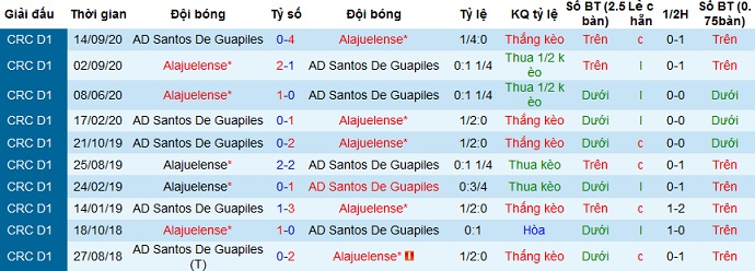 + Lịch sử đối đầu Santos Guápiles vs Alajuelense