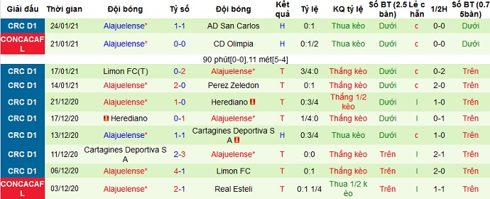 + Thống kê 10 trận gần nhất của Alajuelense