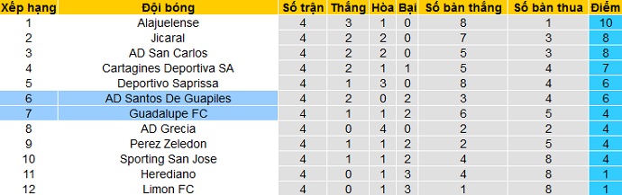 Bảng xếp hạng giải VĐQG Costa Rica trước vòng 5