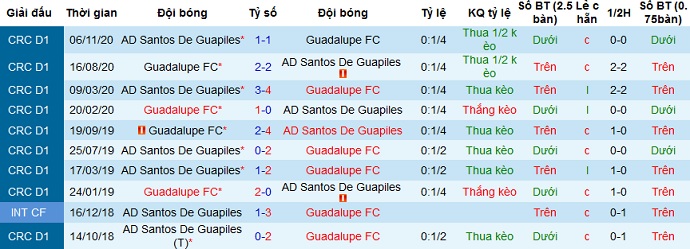 + Lịch sử đối đầu Santos Guápiles vs Guadalupe