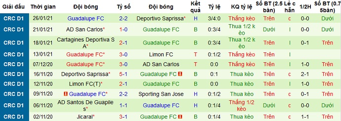 Trong 5 trận gần nhất Guadalupe có được 2 trận thắng, 1 trận hòa và 2 trận thua. Tuy nhiên thành tích sân khách của đội bóng là khá tệ khi đã không thắng trong 7 trận gần nhất, trong đó chỉ có 1 trận hòa và đang để thua ở cả 4 lần du đấu gần nhất.