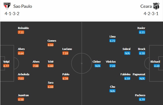 Đội hình dự kiến São Paulo vs Ceará