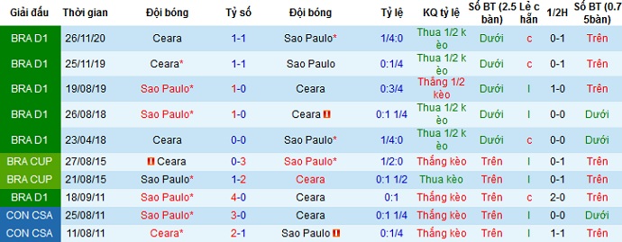 Tỷ lệ kèo São Paulo vs Ceará