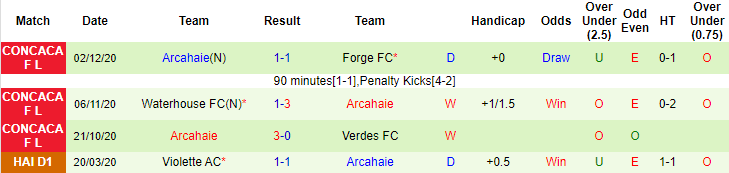 + Thống kê 10 trận gần nhất của Arcahaie