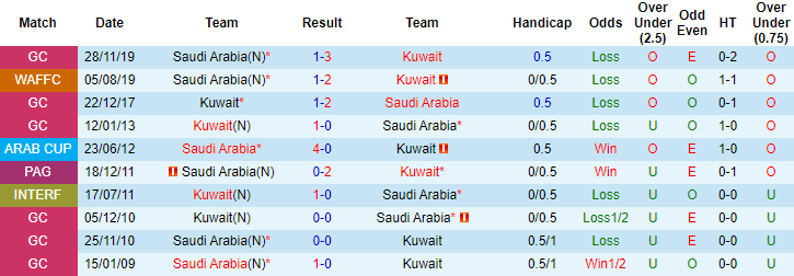 Trong vòng 9 lần chạm trán Saudi Arabia gần đây, Kuwait bất bại tới 7 trận với 5 chiến thắng và 2 trận hòa. 2 trận đối đầu Kuwait gần nhất vào năm 2019, Saudi Arabia thậm chí nhận kết quả toàn thua. 3 trận xuất quân gần đây, Saudi Arabia gây thất vọng khi để thua 2 lần.