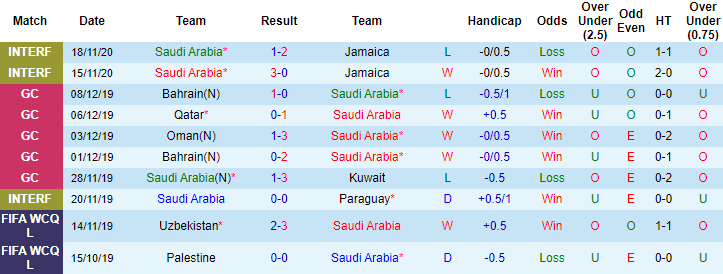 + Thống kê 10 trận gần nhất của Saudi Arabia