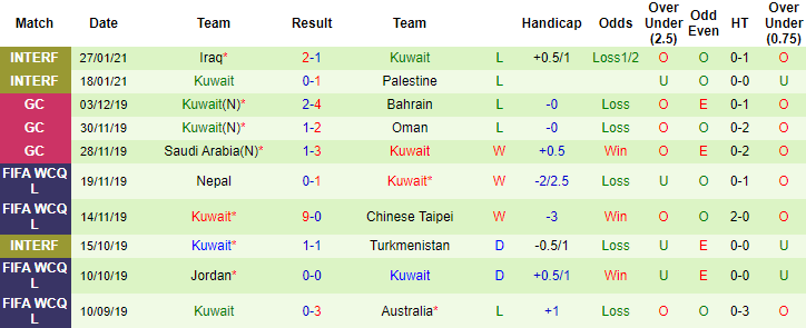 + Thống kê 10 trận gần nhất của Kuwait