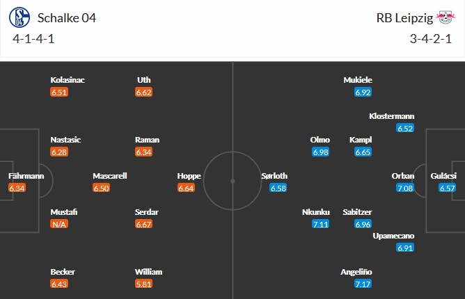 Đội hình dự kiến Schalke 04 vs RB Leipzig