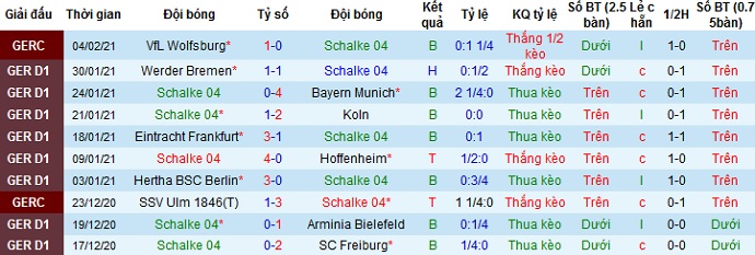 + Thống kê 10 trận gần nhất của Schalke 04