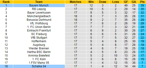 Phong độ và thống kê đối đầu Schalke vs Bayern Munich