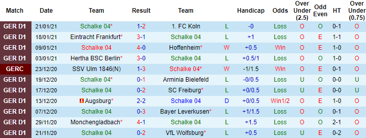 + Thống kê 10 trận gần nhất của Schalke