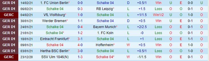 + Thống kê 10 trận gần nhất của Schalke