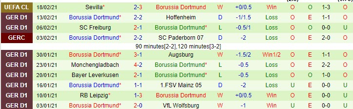 + Thống kê 10 trận gần nhất của Dortmund