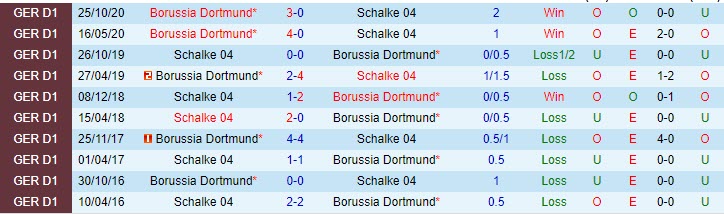 Phong độ và thống kê đối đầu Schalke - Dortmund gần đây: