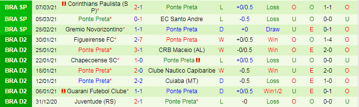 + Thống kê 10 trận gần nhất của Ponte Preta