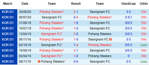+ Lịch sử đối đầu Seongnam vs Pohang Steelers