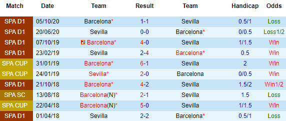 Xét về phong độ thời gian gần đây, Sevilla thậm chí còn tỏ ra nhỉnh hơn so với đại diện tới từ Catalonia. Ở 6 trận mới nhất, Sevilla toàn thắng về chuyên môn và có 5 lần chinh phục thành công rào cản tỷ lệ. Trong khi 8 trận vừa qua dù bất bại nhưng Barca có tới 4 lần bị cầm hòa.