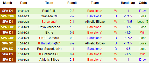 + Thống kê 10 trận gần nhất của Barcelona