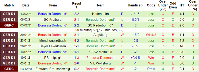 - Thống kê 10 trận gần nhất của Dortmund