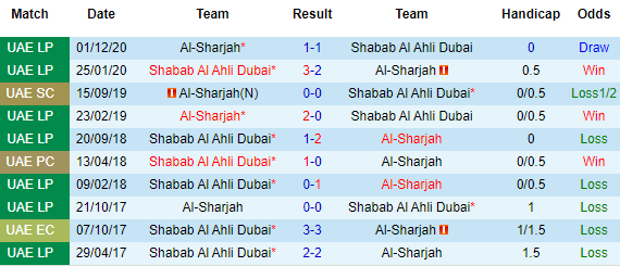 + Lịch sử đối đầu Sharjah vs Shabab Al Ahli Dubai