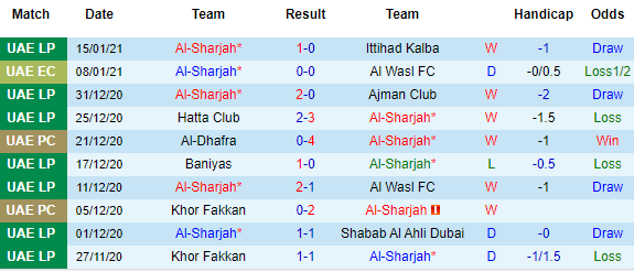 + Thống kê 10 trận gần nhất của Sharjah