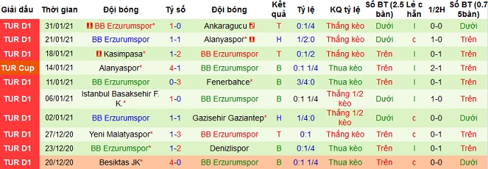 + Thống kê 10 trận gần nhất của Erzurum
