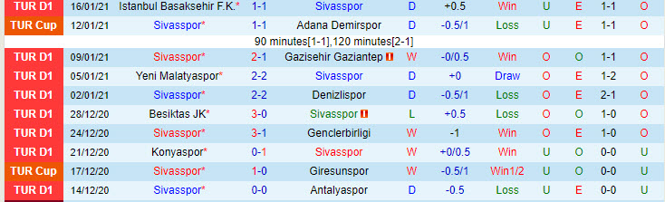 + Thống kê 10 trận gần nhất của Sivasspor
